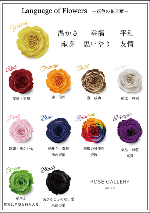 ROSE GALLERY は 1975 年に誕生した日本初の高級バラ専門店です。バラのある豊かなライフスタイルをご提案したい。そんな思いから ROSE GALLERY は生まれました。日々表情を変えるフレッシュローズのドラマティックな魅力。花びらの隅々まで磨き上げたタイムレスローズ(プリザーブドローズ)の丹精な魅力。ROSE GALLERY は契約農家による高品質なバラにこだわり、美しい咲き姿と薫り高く長く楽しめる上質なバラを一本一本大切にお届けしています。お誕生日や記念日、プロポーズなど人生の物語、その特別な瞬間を、バラを通して彩るお手伝いをいたします。