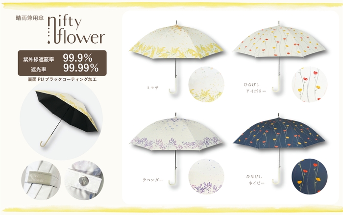 遮光率・紫外線遮蔽率99.9%の晴雨兼用傘 少し大きめサイズの「niftyflowerシリーズ」が登場