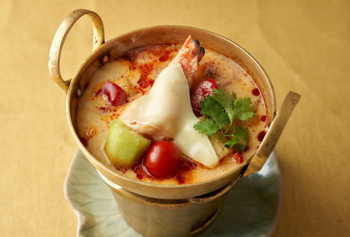 日本ではとても辛いイメージを持たれているトムヤムクンに豆乳とチーズを加え、辛さを抑えて食べやすくアレンジした一品。