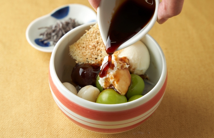 メニュー名:シャインマスカットとマスカルポーネの白玉あんみつ