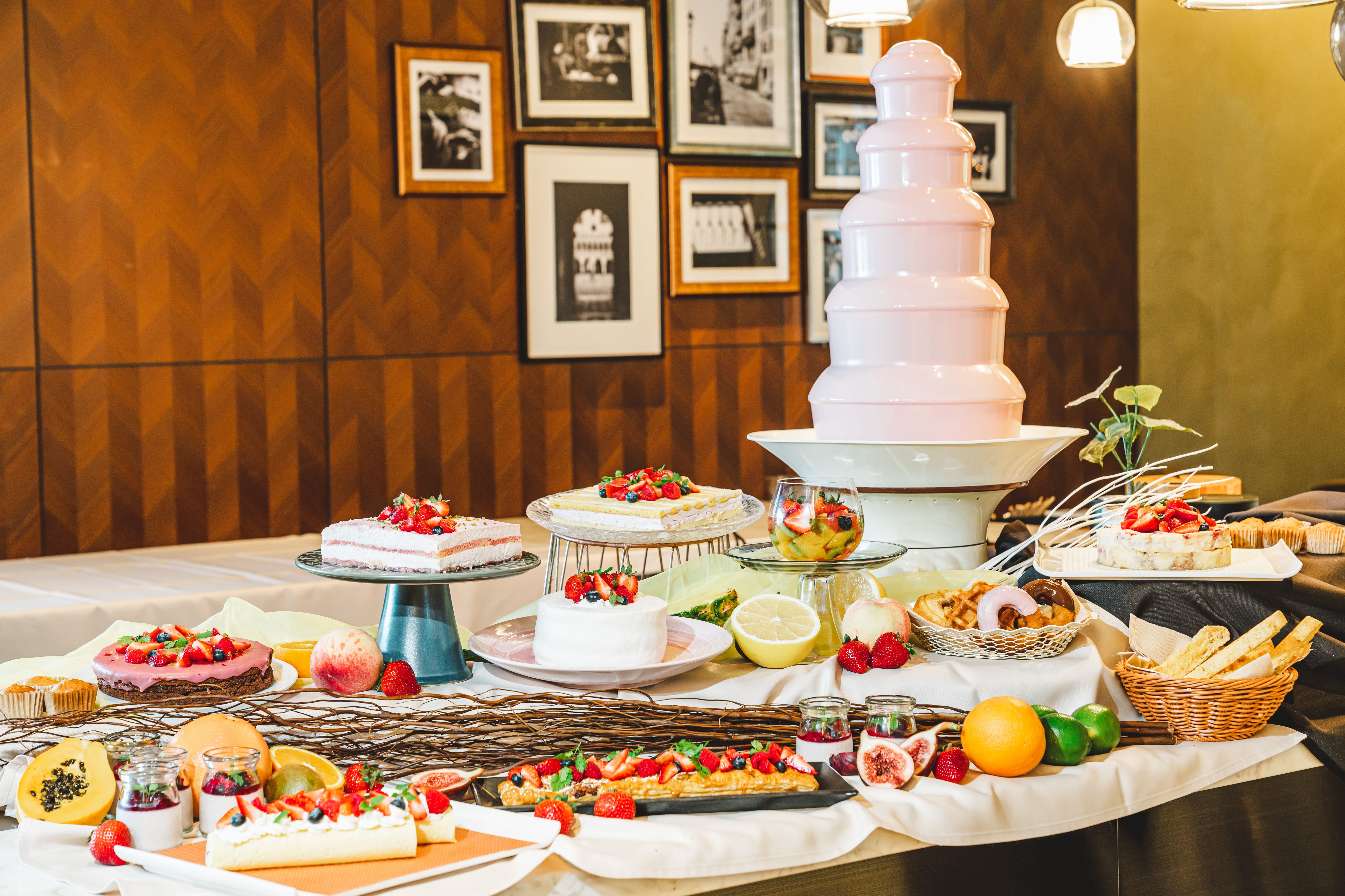 ストロベリーチョコレートファウンテンではミニスイーツを自由自在にデコレーションして楽しむのもおすすめです。