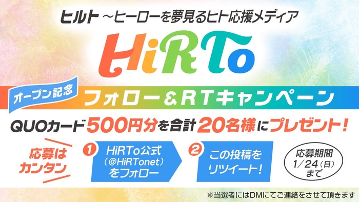 ヒーローを夢見るヒト応援メディア「HiRTo(ヒルト)」1月11日(月祝)よりオープン!フォロー&リツイートキャンペーンも実施!