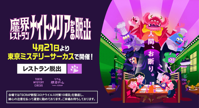 株式会社SCRAP(本社:東京都渋谷区 代表:加藤隆生)は、2022年4月21日(木)より東京ミステリーサーカスにて開催される新作リアル脱出ゲーム『魔界レストラン ナイトメリアからの脱出』のイメージソングとして、BRADIOの楽曲を使用したCMを公開したことを発表いたします。