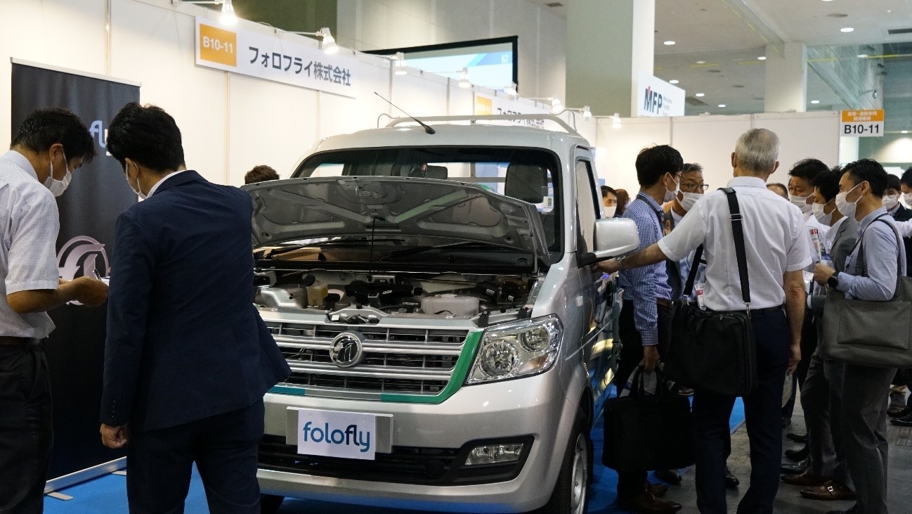 今回、JEEを代表して関西物流展に参加したのは、グループ傘下の巨一動力系統有限公司の日本支社である(以下「巨一動力」)。同社と日本のファブレスEVメーカー、フォロフライとの共同ブースは、見学、質問する来場者に終始取り囲まれていた。