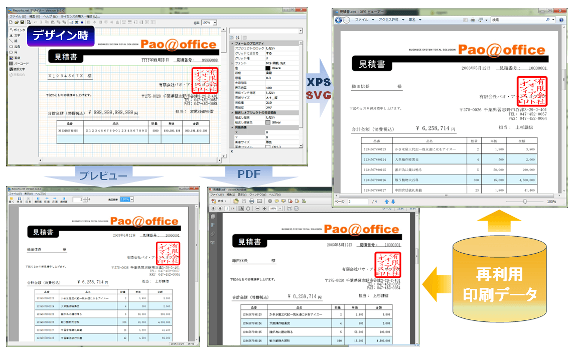 Reports.netは、業務系アプリケーション開発を自社生業としているパオ・アット・オフィスが、同じ開発者の目線で設計・開発した、これまでの.NET帳票ツールの弱点をカバーした製品です。