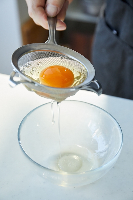 - 水溶性卵白には臭みがあり水分が多いため、焼いてる途中ではねたりするので、取り除く