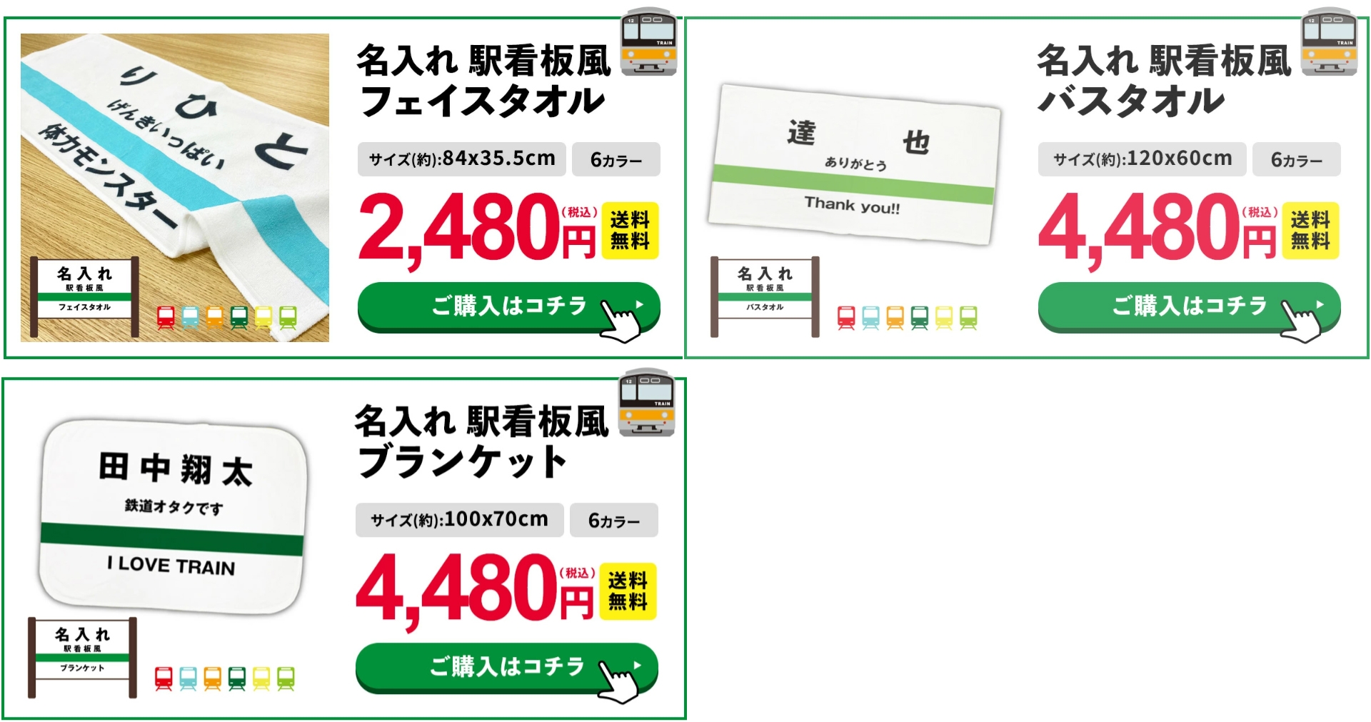 『駅看板風デザインタオル』は、鉄道ファンや旅行好きの方々にぴったりのアイテムです。実際の駅看板をモチーフにしたデザインは、懐かしさとユニークさを兼ね備えています。さらに、このタオルは自由に名入れが可能なため、オリジナルの一品としてご自身用やギフトとしても最適です。