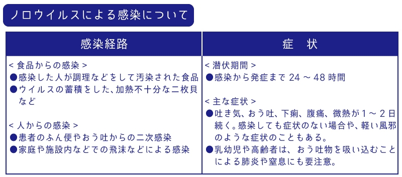 ノロウイルスの感染経路、症状はどのようなものでしょうか?