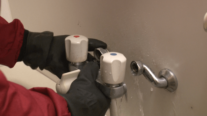 次に経年劣化が激しかった浴室の蛇口を交換。その後、バスタブの裏側から壁まで、素材ごとに掃除道具と洗剤を換えてとことん汚れを落としていきます。すると、見るも無残に汚れていた浴室が見違えるほどきれいに!