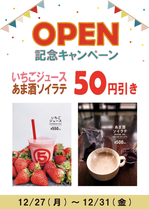 岡山の人気甘酒ジュースショップ『マルゴデリ 越谷イオンレイクタウンkaze店』が12月25日(土)よりオープン!