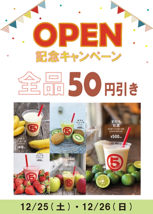 株式会社ニッポン放送プロジェクト(本社:東京都千代田区)は、岡山で人気のジュースショップ『マルゴデリ 越谷イオンレイクタウンkaze店』(店舗運営:株式会社スタイルエージェント)を『イオンレイクタウン kaze』に、12月25日(土)より期間限定オープン致します。