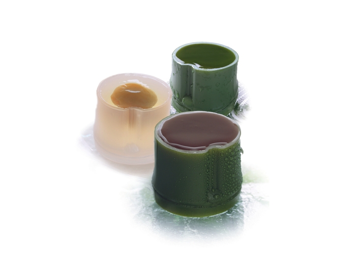 夏の看板商品である水羊羹は、手間を惜しまず、小豆の味をしっかりと感じられる濃厚なこし餡に仕上げております。合わせる天然糸寒天は、厳選された天草を使用。寒さの厳しい時期に天日干しを繰り返し行う伝統製法でつくられ、なめらかな口当たりが人気の商品です。昨年は、包装資材のプラスチック使用量を削減するため、竹容器から25年ぶりにパッケージを変更いたしました。これにより、原料である樹脂を28gから5gにまで82%を減量し、重ねて保管できる形状にすることで輸送の頻度を10分の1へと減らしました。