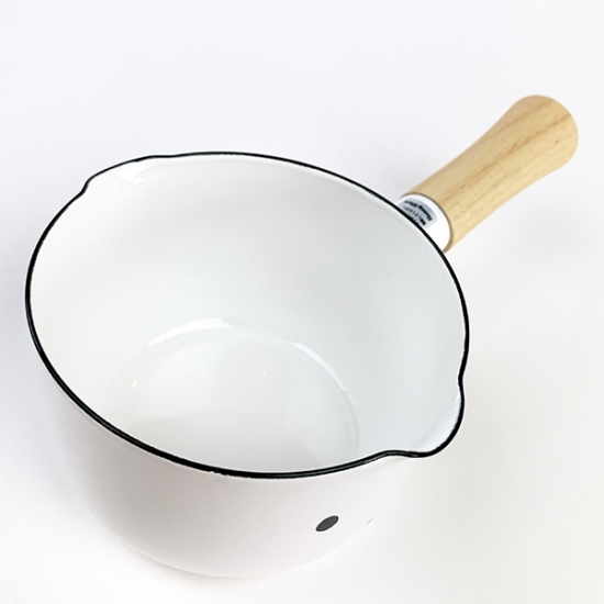 こちらは、ミルクパンです。持ち手の部分はナチュラルなウッドテイストでオシャレですよね♪
