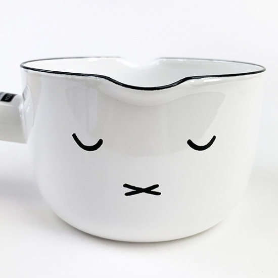 いつものフェイスデザインがキュートなケトルを始め、ミルクパンやマグが揃っています。ホーロー製なのでお手入れも簡単なんですよ♪
