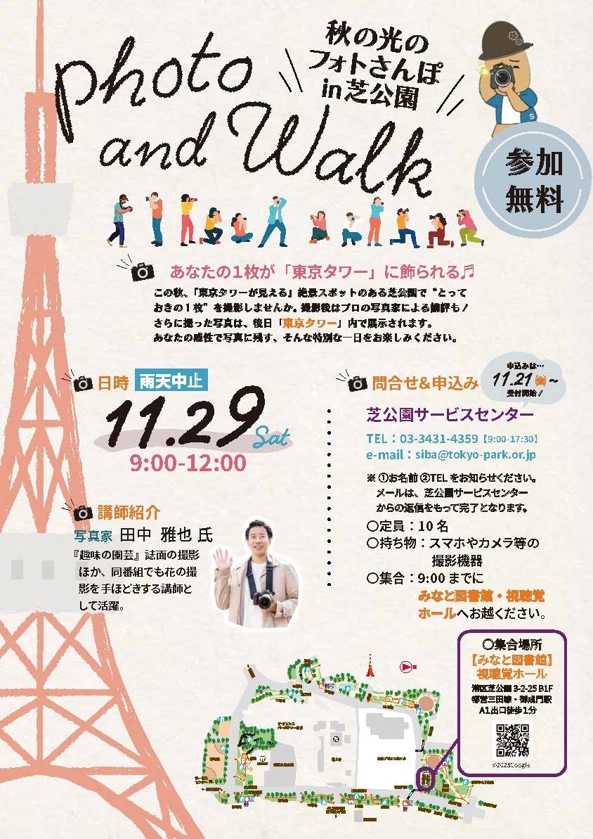 この秋、『東京タワーが見える』絶景スポットのある芝公園で“とっておきの1枚”を撮影しませんか。撮影後はプロの写真家による講評も!