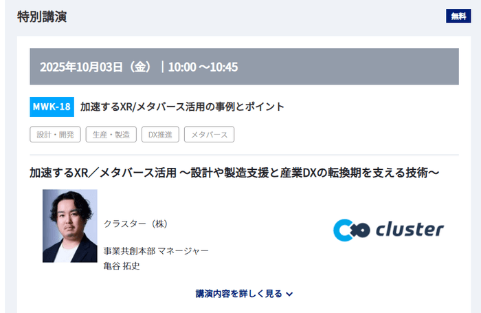 「特別講演:加速するXR/メタバース活用~設計や製造支援と産業DXの転換期を支える技術~」