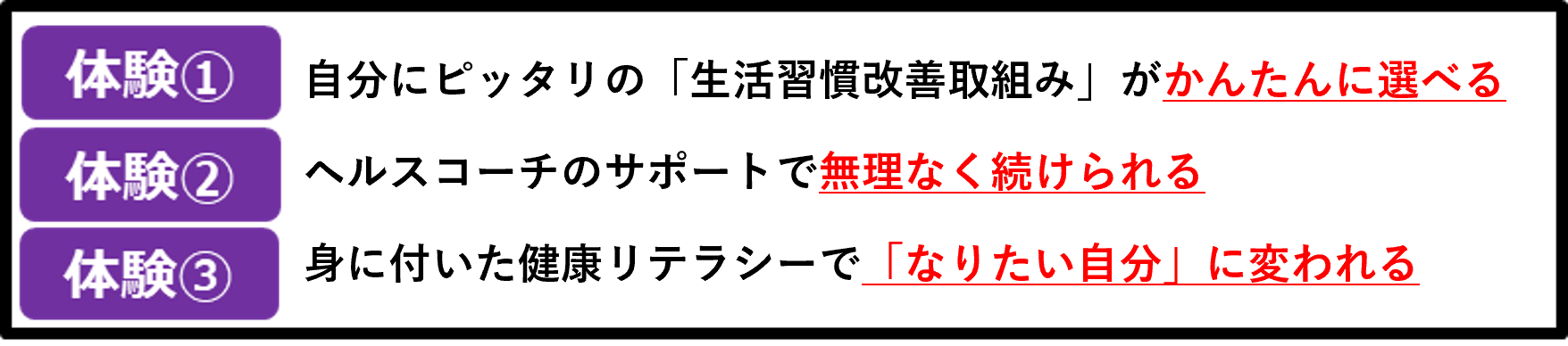 体験① 自分にピッタリの「生活習慣改善取組み」がかんたんに選べる