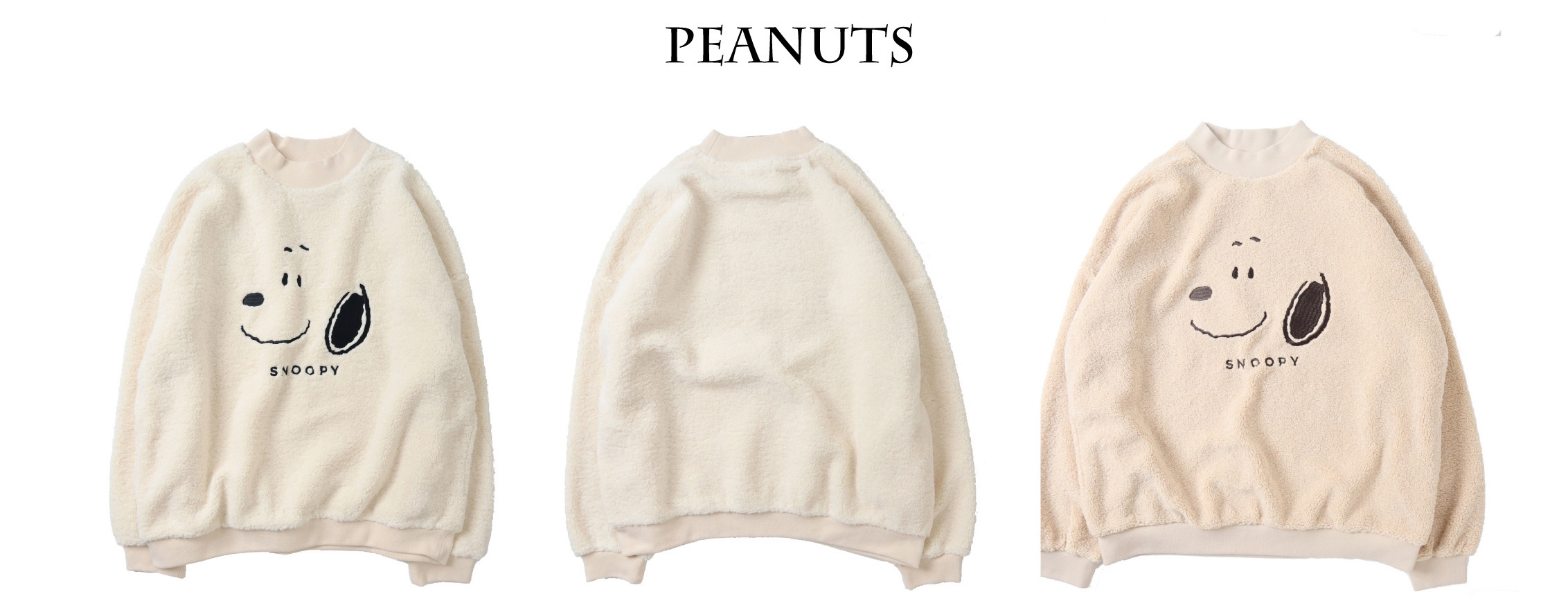 名称 : チャーリーブラウンフェイス柄刺繍ボアトレーナー