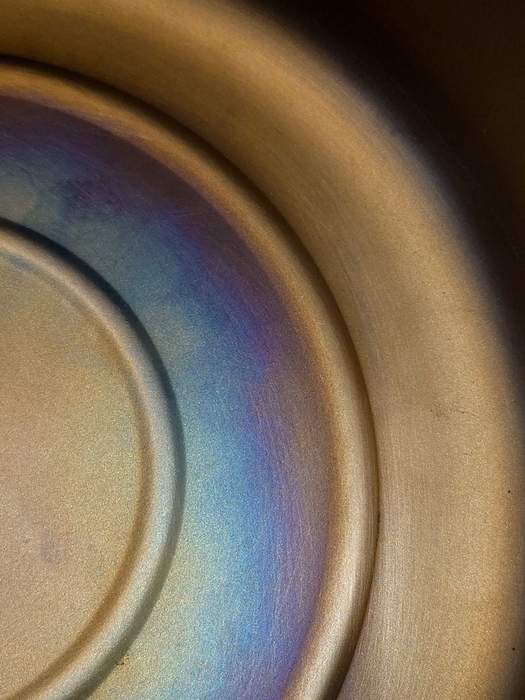 アルミやステンレスと比べてアレルギー性物質が大幅に少なく、素材強度の高いチタン。金属製品特有のいやな臭いがほぼなく、木製製品のように料理本来の風味を壊さないので食器や調理器具に最適な素材です。また軽量かつ熱での変形が少ない金属のため食洗機での洗浄も可能です。※電子レンジ非対応。長年使用することで変色し、いわゆる「チタンブルー」が目立つため汚れも気になりません。