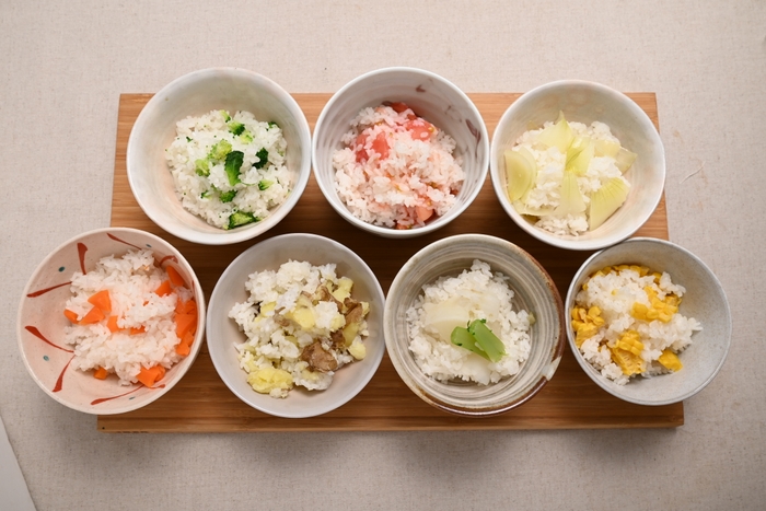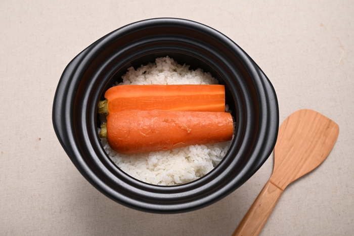 ブロッコリーやにんじん、新玉ねぎ、夏にはトマトやとうもろこしなど、旬の野菜をまるごと炊き込むことで、野菜から出る優しい甘みや旨みをたっぷりと感じられる、彩り豊かなごはんが楽しめます。炊き上がった野菜はしゃもじで簡単にほぐし混ぜることができ、規格外品でもおいしく召し上がれます。