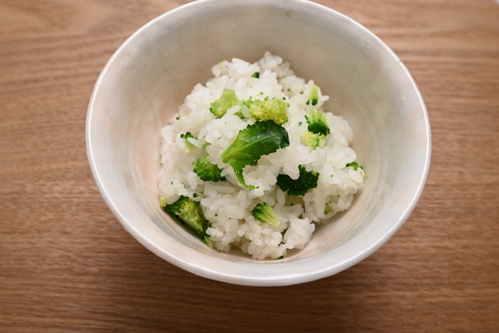 通常通りに炊きあげたら、芯を除いてしゃもじでほぐし、混ぜる。