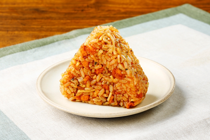 そばめし風のおにぎりです。ごはんを炊く時に「激辛ソース」を入れ、