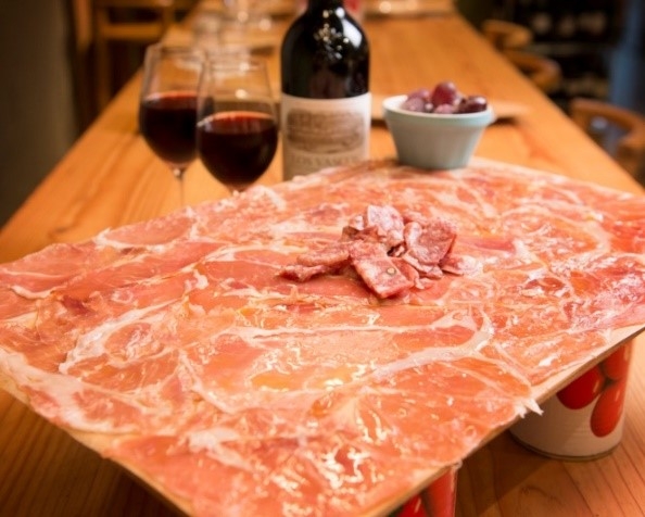 世界屈指の摩天楼ともいわれる超高層ビルが立ち並ぶ西新宿エリアは、オフィス街と繁華街の両方を兼ね備えるエリア。西新宿一丁目店は、地下1階、新宿駅から徒歩3分、86席+10席のスタンディング席がある、ゆっくりしたい方も、さくっと飲みたい方も楽しめるお店です。仕事帰りのお客様はもちろん、週末は、お出掛け帰りのお客様もお立ち寄りいただけます。定番の「元祖!イタリア産&スペイン産 生ハムとサラミのてんこ盛り」や「お肉屋さんのシャルキュトリー」など、ワインが種類豊富なだけでなく、様々なお酒に合うおつまみが盛りだくさんです。