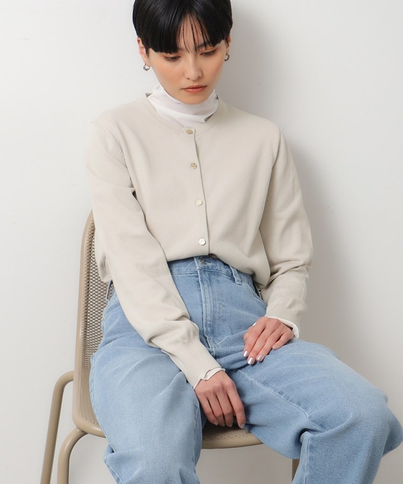 1枚あると便利な、ベーシックなクルーネックカーディガン。