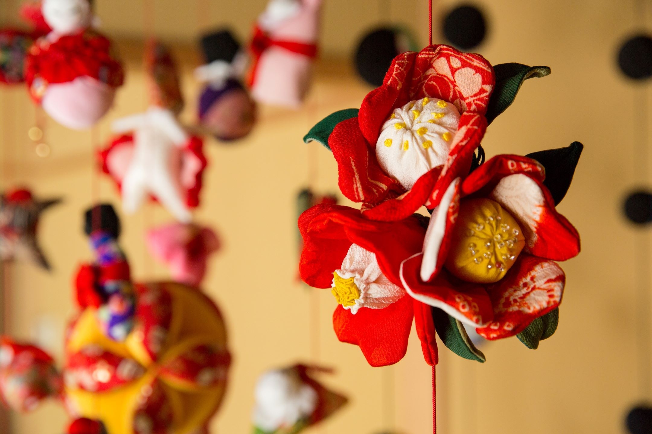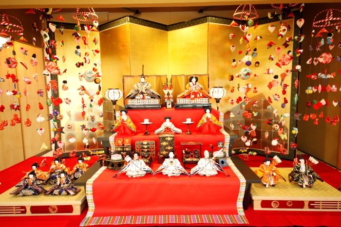 3月の桃の節句にちなんだ雛飾りとそれに関係するモチーフたち、そして5月の端午の節句にかかせない五月人形と関連モチーフを、ロビースペースに一同に展示します。合計1500点以上のモチーフ、一つ一つが全て手作り、ひと針、ひと針想いがこもっています。間近で観覧し、おめでたい節目をスタッフ一同心からお祝いし、地元の伝統文化の伝道者の一員として、その魅力の数々を紹介してまいります。
