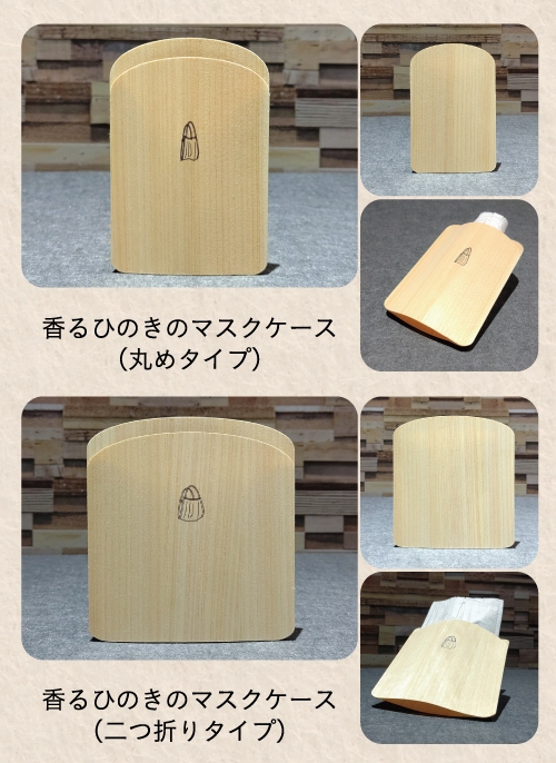 香るひのきのマスクケース(丸めタイプ/二つ折りタイプ)