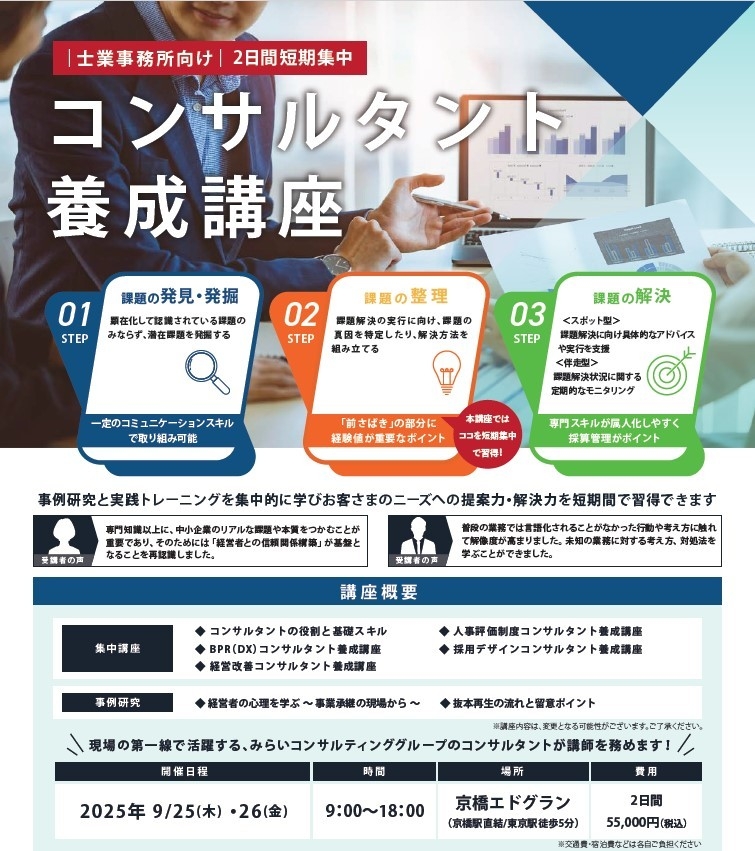 ■みらいコンサルティンググループの取り組み「士業事務所向けコンサルタント養成講座」