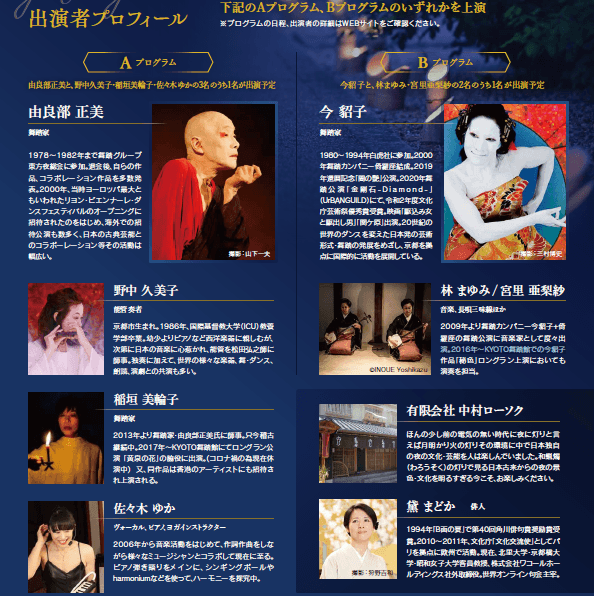 ※舞踏の演者は日によって異なります。詳しくはHPをご確認ください。