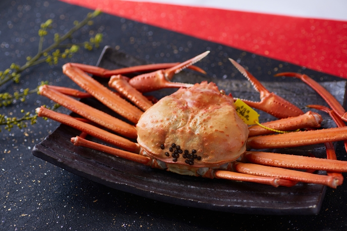 例年9月から翌年5月までが漁期ですが、特に9月~11月は“走り”の時期ならではの瑞々しい身質と濃厚な旨みを楽しめます。当館では、朝競りで仕入れた香住ガニをその日のうちにお客様へご提供。焼き・刺し・茹で・蒸しなど、多彩な調理法でお召し上がりいただけます。