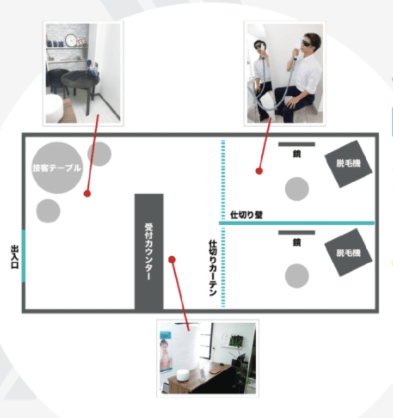 1部屋に仕切りを作ることでワンループタイプでもセルフ脱毛2台の稼働が可能です。