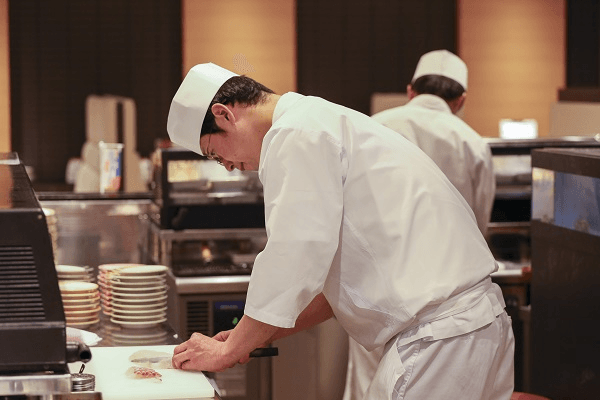 チェーン店でありながら板前のいる廻転寿司にぎり長次郎。魚を〆て、さばいて、にぎる。板前の仕事ぶりを、ぜひその目でお確かめください。