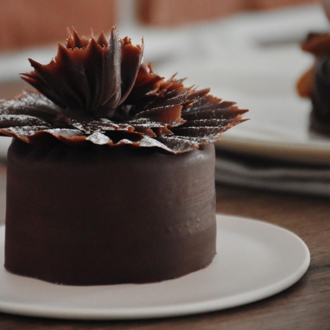 LENOTRE <ルノートル>のスペシャリテ。芳醇なムースショコラノワールとメレンゲを使用した、濃厚なのに軽やかなあと味のケーキ。一つひとつ職人の手作りのチョコレート細工で華やかに仕上げました。