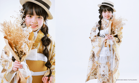 特別な記念となる七五三やハーフ成人式では親御さまやお子さまの中にもほかの子と被らない個性的なヘアスタイルを望まれる方もいらっしゃいます。個性的なアレンジでも、意外と古典柄な着物との相性もよく、より一層モダンな雰囲気を演出してくれます。