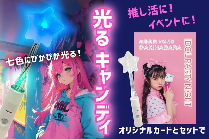 七色に光るキュートな星形キャンディがオリジナルカードとセットで登場。