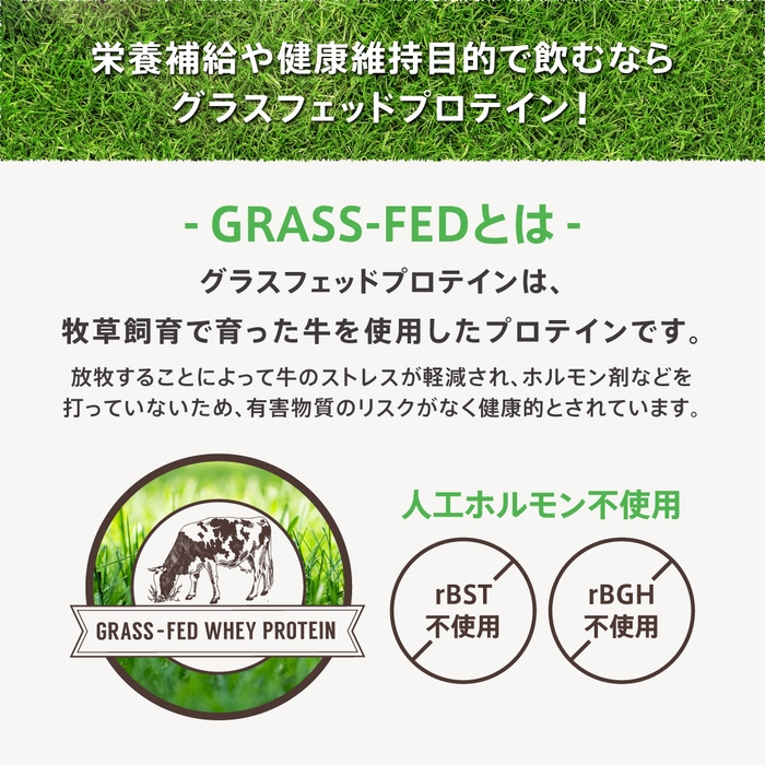 【 Point1 】グラスフェッドの原料を使用した自然派プロテイン