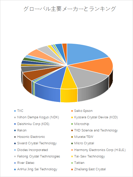 LP Informationのトップ企業研究センターによると、水晶振動子と発振器の世界的な主要製造業者には、TXC、Seiko Epson、Nihon Dempa Kogyo (NDK)、Kyocera Crystal Device (KCD)、Daishinku Corp (KDS)、Microchip、TKD Science and Technology、Rakon、Hosonic Electronic、Murata/TEWなどが含まれている。2024年、世界のトップ10企業は売上の観点から約36.0%の市場シェアを持っていた。