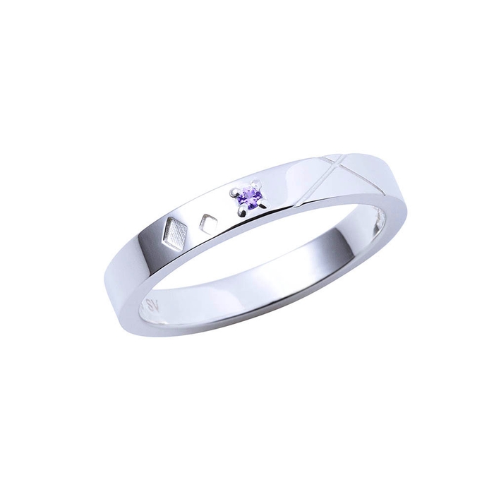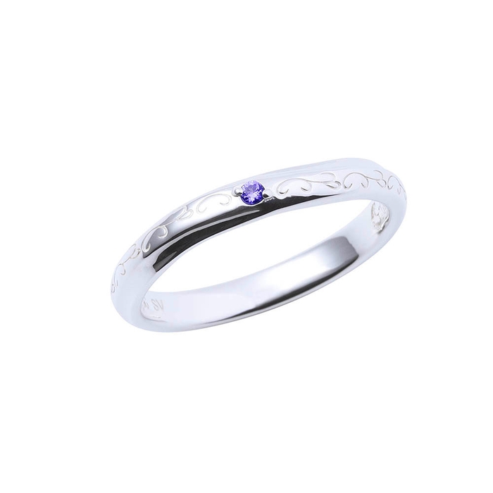 SolidSの衣装から取り込んだデザインに、世良 里津花のイメージカラーストーンを1石セットした平打ちリング。