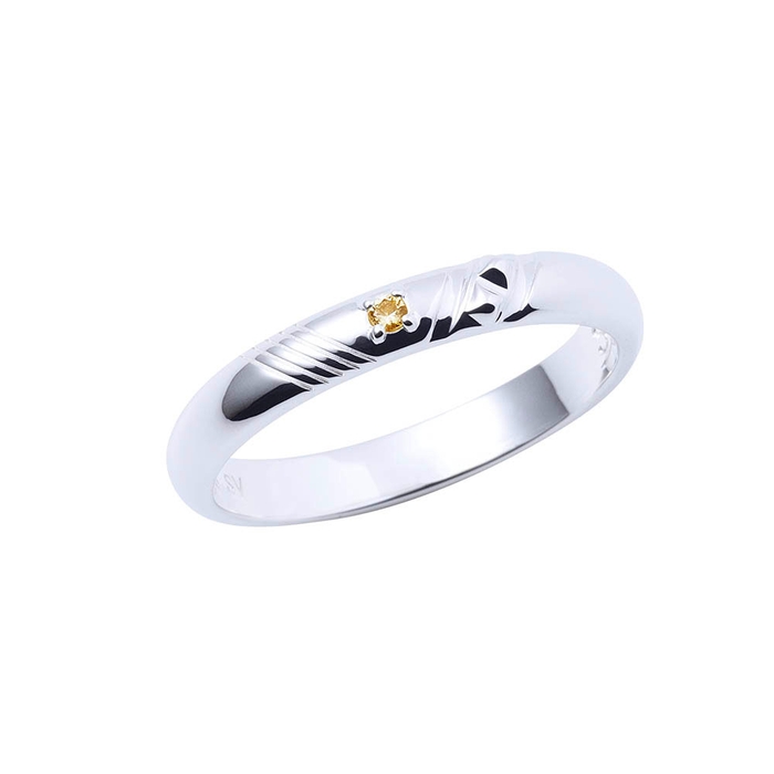 SOARAの衣装から取り込んだデザインに、在原 守人のイメージカラーストーンを1石セットした甲丸リング。