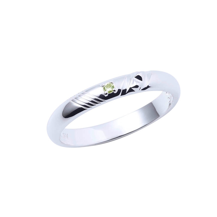 SolidSの衣装から取り込んだデザインに、奥井 翼のイメージカラーストーンを1石セットした平打ちリング。