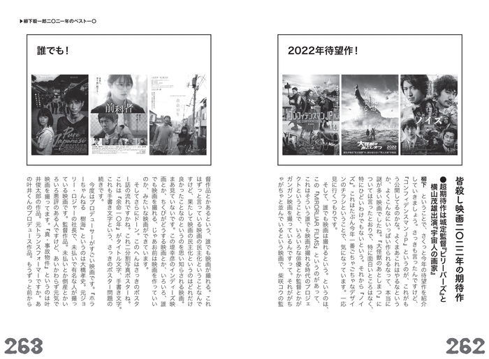 「皆殺し映画放談」では、高橋ヨシキ(アート・ディレクター、映画ライター、デザイナー、悪魔主義者)を迎え、日本映画のあれやこれや、昨今の映画ポスター、フライヤーのビジュアル問題、さらには2021年ベスト映画についてなど大いに語りつくす。