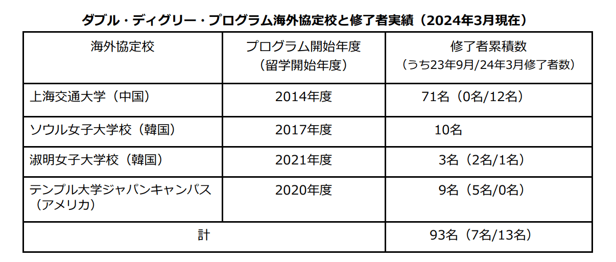 独自の留学制度「ダブル・ディグリー・プログラム」 参加学生13名が2大学の学位を取得