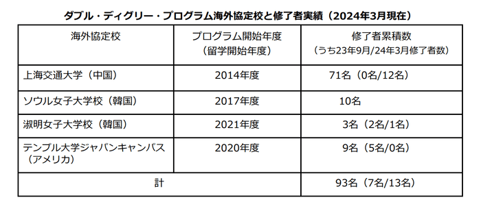 昭和女子大学 (学長 金尾朗: 東京都世田谷区) では16日、国際学部の「ダブル・ディグリー・プログラム」参加学生13名が本学を卒業し、プログラムを修了(2大学の学位を取得)しました。今回の卒業生を含めると、2023年度は9月修了者と合わせて20名、2017年からのダブル・ディグリー取得者はのべ93名になります。