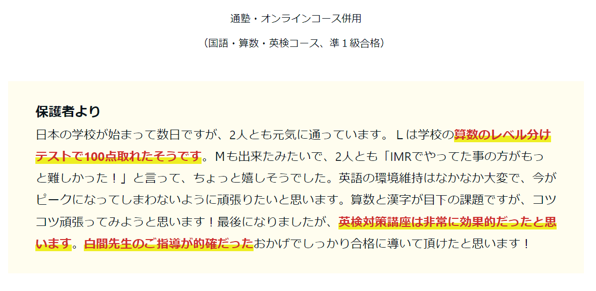 「的確な英検対策のおかげでしっかり合格に導いていただきました!」L君、M君