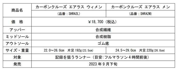本製品は、高い衝撃吸収性と軽量性を兼ね備え、軽やかな走りをサポートし、スピードトレーニングやペース走に加え、フルマラソンやハーフマラソンで記録を狙うランナーを対象としたランニングシューズです。