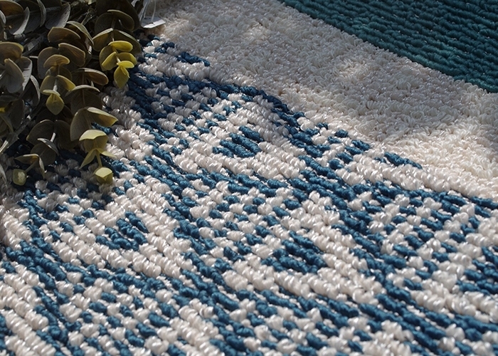 キルトラグみたいな中綿を詰めてつくる柔らかいラグとは違い、日本製のタフトラグは基布にひとつひとつ糸を織っていくという製法です。