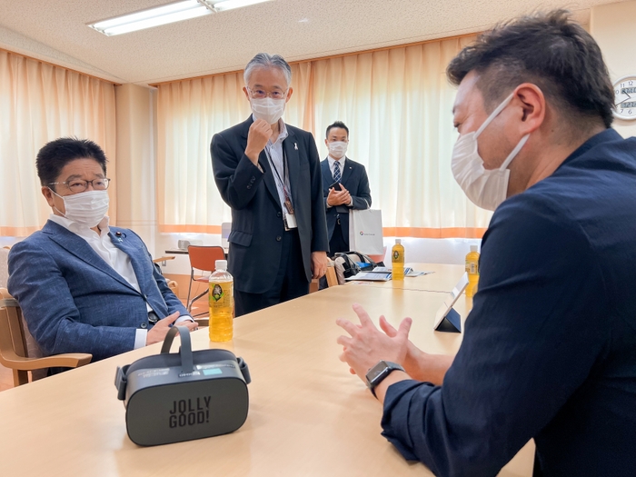 株式会社ジョリーグッド(東京都中央区、代表取締役:上路健介、以下 ジョリーグッド)は、開発・提供する医療福祉向けVRサブスクリプションサービス「JOLLYGOOD+(ジョリーグッドプラス)」を導入いただいている就労移行支援施設に、加藤勝信 厚生労働省大臣(以下 加藤大臣)が視察に訪れたことをお知らせいたします。